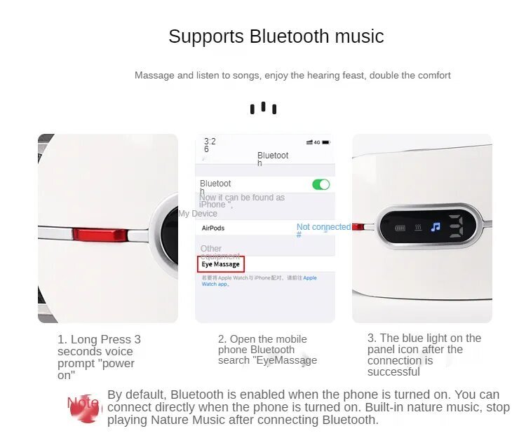 Массажер для глаз работает от батареек, что делает его удобным и независимым от наличия розетки. Это позволяет использовать его в любом месте, где есть доступ к источнику питания.