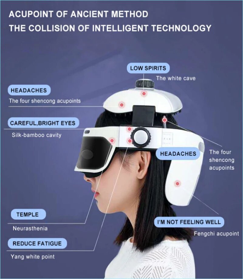 Представляем вашему вниманию массажер для головы, массажный шлем для головы, который сочетает в себе электрические вибрации, пневматический массаж, автоматический горячий компресс и Bluetooth-функцию музыкальной релаксации.