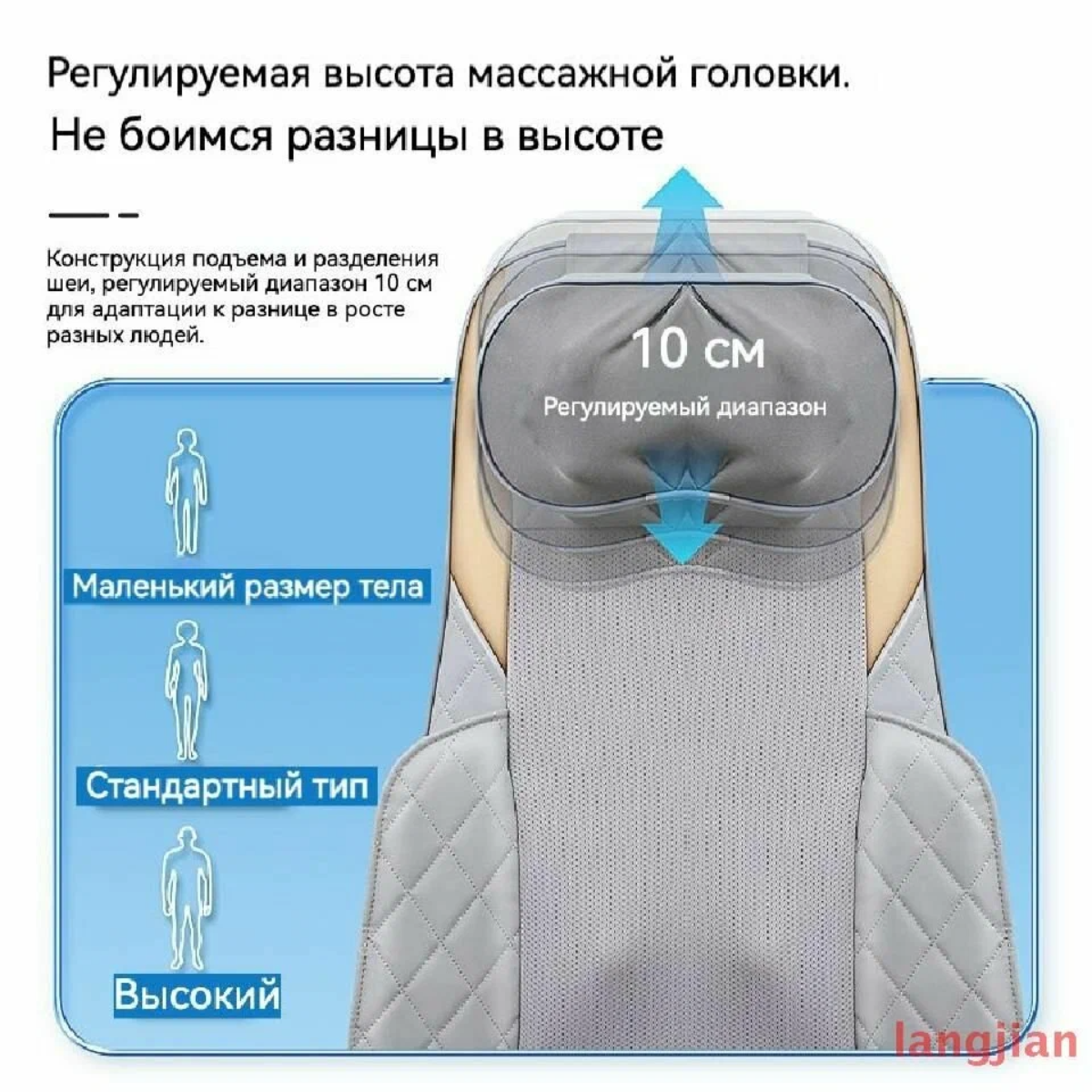 Управление массажером осуществляется с пульта управления. Для крепления к креслу предусмотрен фиксатор на обратной стороне спинки. После 15-минутного сеанса массажа срабатывает автоотключение.