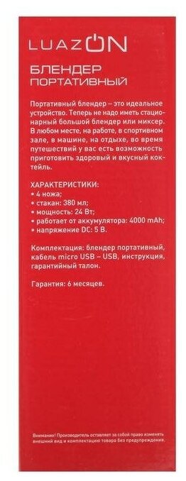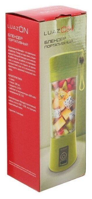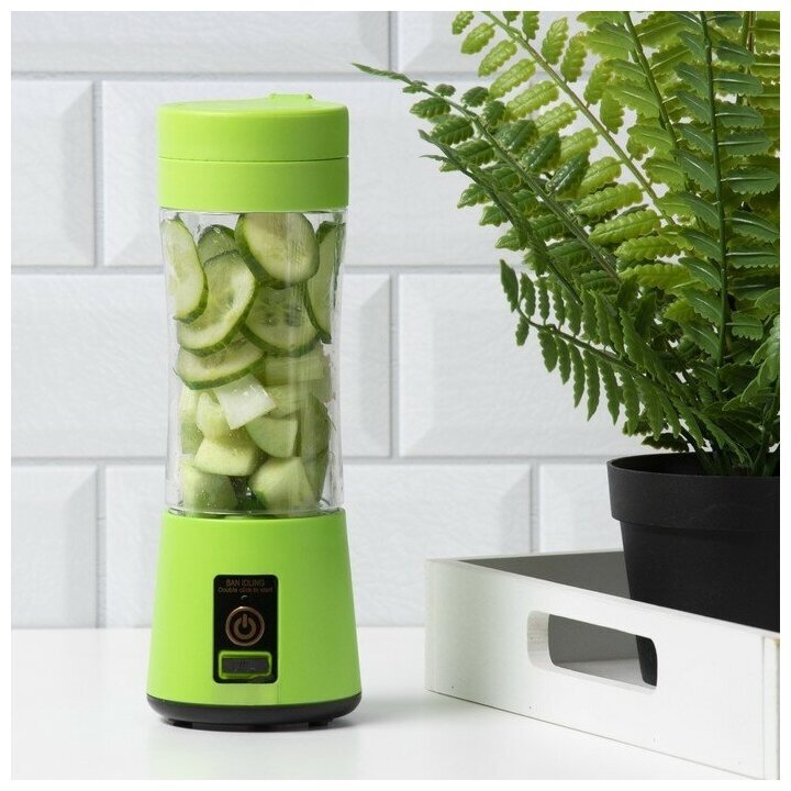 Блендер портативный, 24 Вт, 380 мл, USB, зеленый. Цветная картонная коробка. Портативный блендер для смузи - это идеальное устройство! Преимущества портативного смузи мейкера: Компактный размер. Емкий аккумулятор. Возможность приготовить свежий смузи или коктейль в любом месте. Очень удобен для приготовления энергетических коктейлей в спортзале. Легко и быстро готовить протеиновые коктейли. Можно приготовить детское питание. Крышка надёжно закрывается, жидкость никогда не прольётся. Легко моется. Защита от случайного включения. Подзарядка от любого USB устройства.